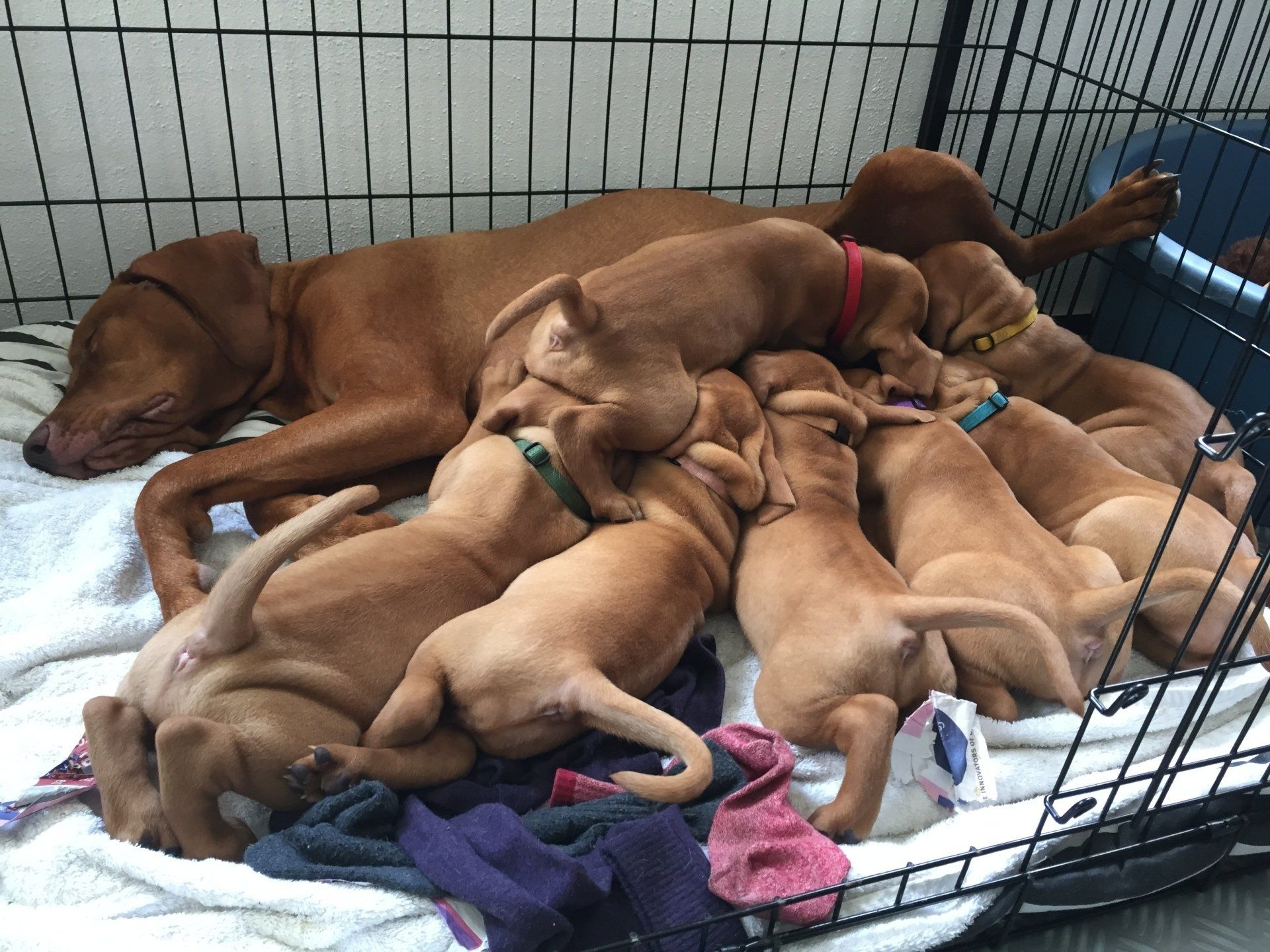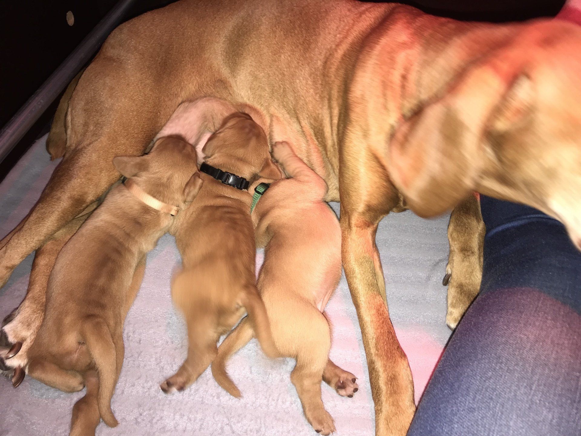 Een of twee keer per jaar proberen we een nestje te fokken bij een van onze teven.