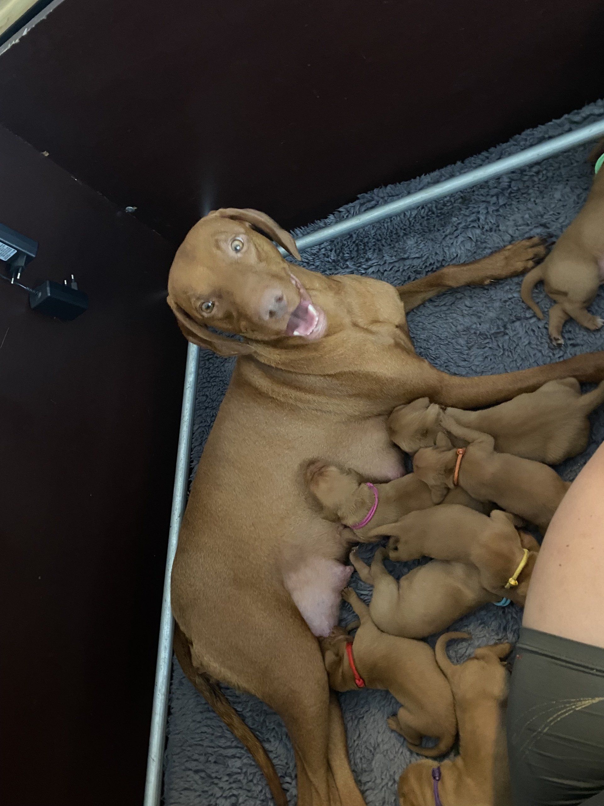 Evy heeft eind maart 2024 het leven geschonken aan 10 mooie puppy's. De papa van de Pups is Játszik Frédéric Jazz.